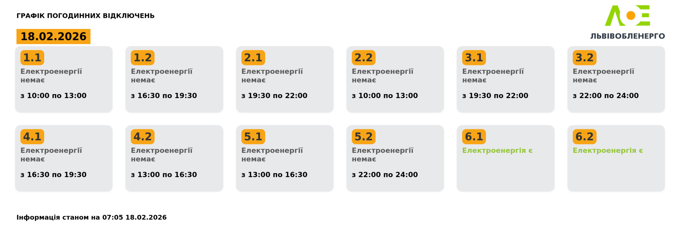 За розпорядженням НЕК «Укренерго» протягом 18 лютого у Львові та області буде застосовано погодинні відключення.