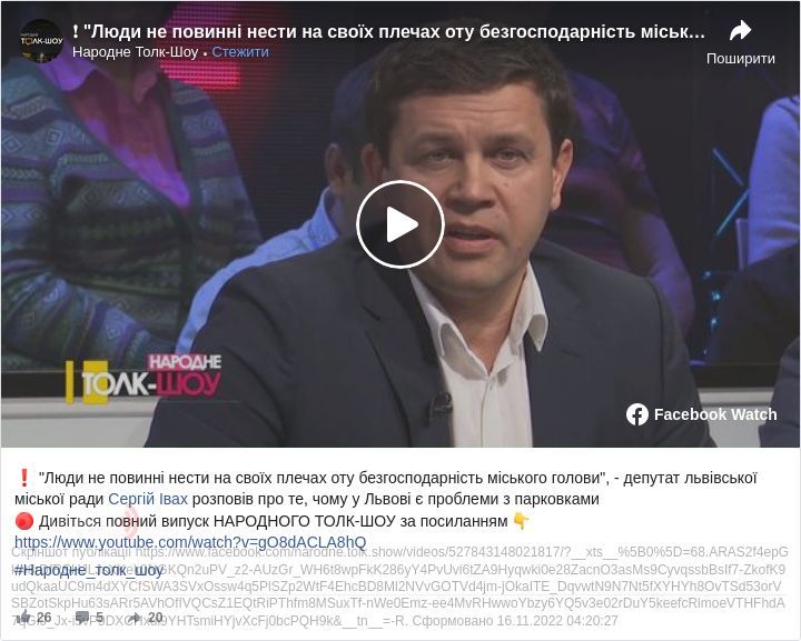 Про це в ефірі «Народного толк-шоу» на телеканалі НТА заявив депутат Львівської міської ради Сергій Івах.