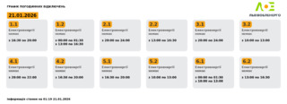 Група 1.2. Електроенергії немає з 00:00 до 01:30, з 13:00 до 16:30.