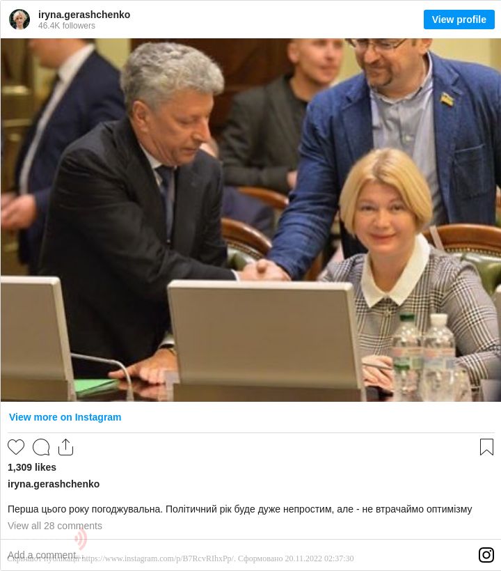 «Перша цього року погоджувальна. Політичний рік буде дуже непростим, але - не втрачаймо оптимізму», - написала Геращенко.