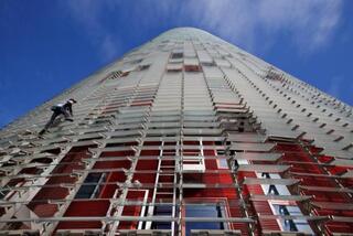 Як повідомляє «Reuters», 54-річний екстремал піднявся, а потім спустився стіною заскленої офісної будівлі, відомої завдяки своїм нічним ілюмінаціям. Весь шлях зайняв у Робера близько однієї години.