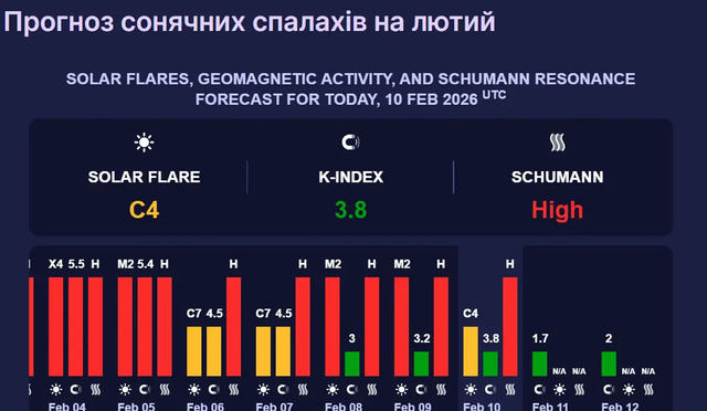 За даними порталу Meteoagent, у середу потужність космічного шторму відповідатиме «зеленому» рівню з К-індексом 1,7 бала. Такий низький показник активності вважається безпечним і не спричиняє негативного впливу на самопочуття метеозалежних людей чи роботу технічних систем.