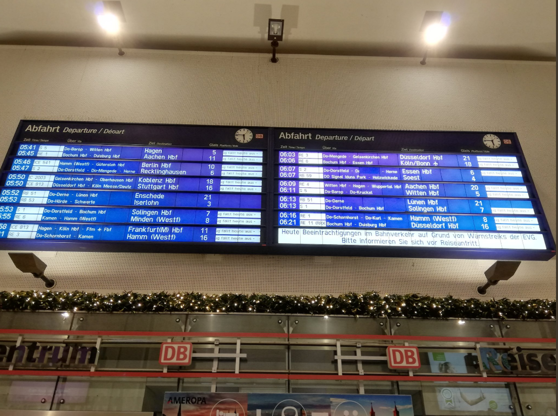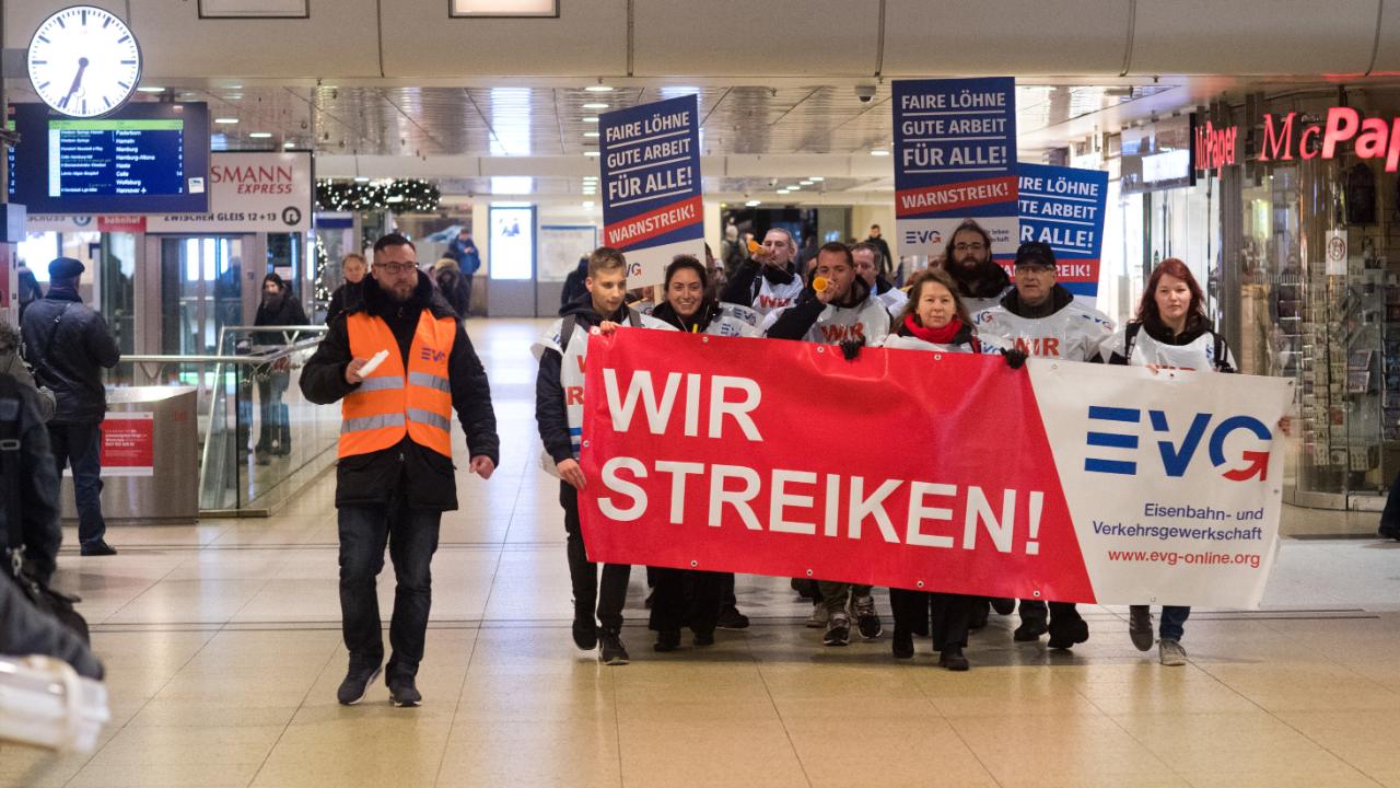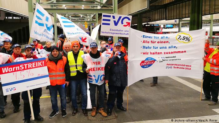 Профспілка EVG оголосила попереджувальний страйк після провалу тарифних переговорів з Deutsche Bahn. EVG не задоволена тим, що їй не вдалося добитися необхідного підвищення зарплати для 160 тис. своїх членів. Deutsche Bahn зі свого боку розкритикувала страйк як абсолютно непотрібний, оскільки, на думку компанії, тарифні переговори минули успішно.