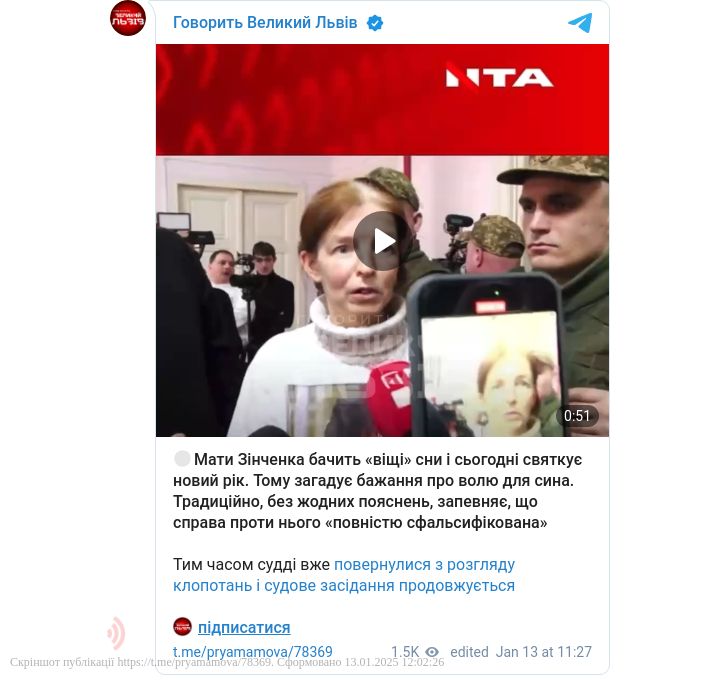 У суді присутня так звана група підтримки підозрюваного Вячеслава Зінченка, зокрема, і його мати. Вона очікувано зробила нову заяву, що не вірить у винуватість сина.