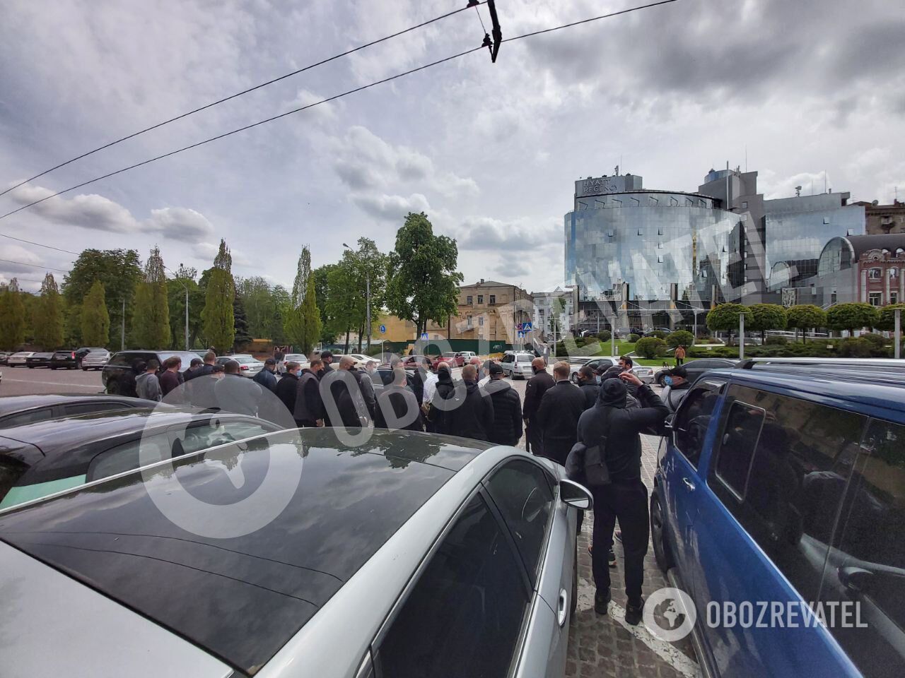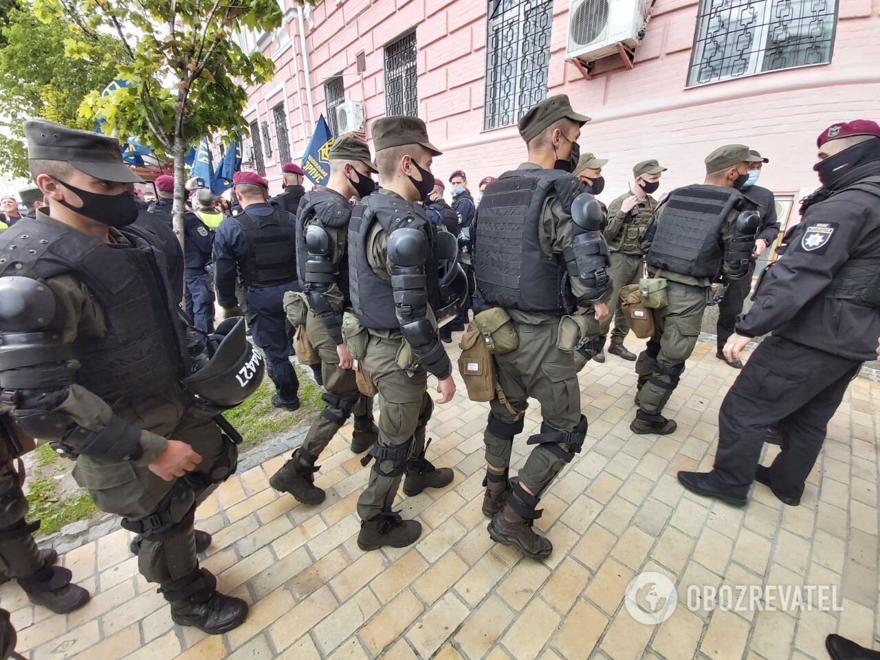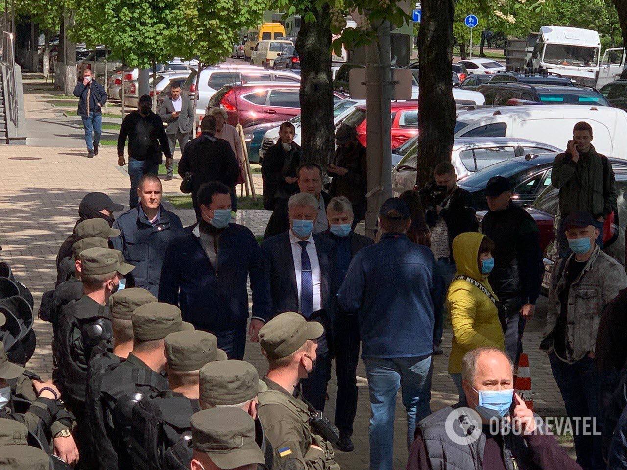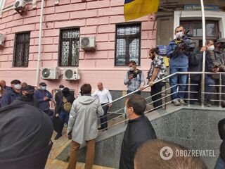 Відомо, що охоронці Медведчука зробили для нього своєрідний коридор, водночас перекриваючи вхід у будівлю іншим присутнім. Їх налічується близько 120 осіб.
