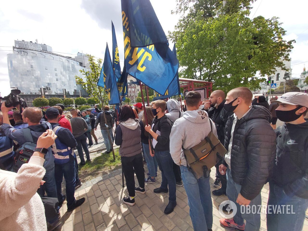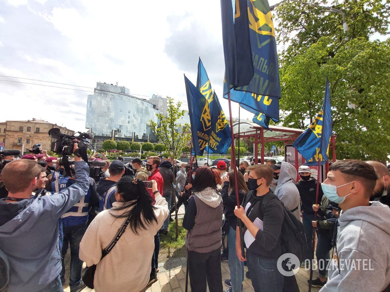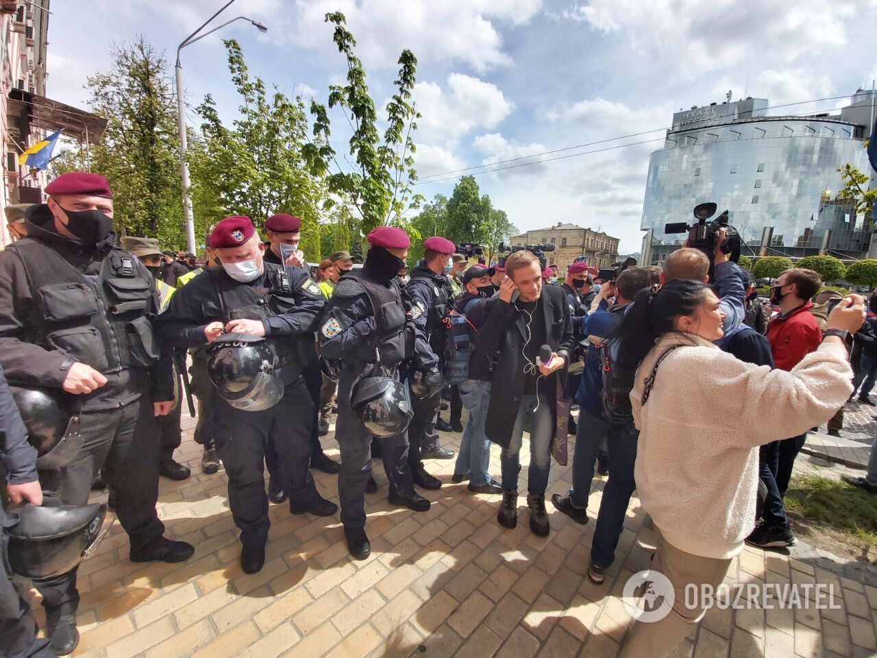 Відомо, що охоронці Медведчука зробили для нього своєрідний коридор, водночас перекриваючи вхід у будівлю іншим присутнім. Їх налічується близько 120 осіб.
