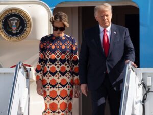 Екс-президент Дональд Трамп і Меланія Трамп прилетіли на Флориду в день інавгурації нового президента Джозефа Байдена. Перша леді, яка від’їжджала в чорному вбранні, змінила переодягнулась в літаку з Вашингтона в Флориду.