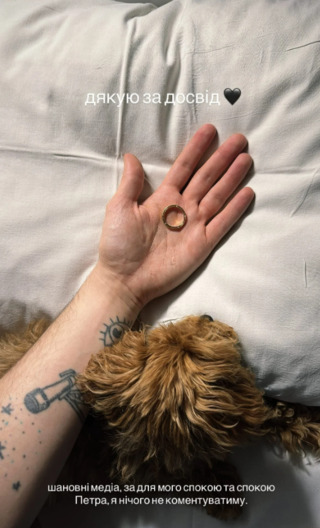 «Ми розійшлися. Дякую за досвід. Прошу медіа утриматись від допитів. За для мого спокою та спокою Петра — я нічого не коментуватиму. З днем Святого Валентина усіх!», — написав Melovin у сторіз.