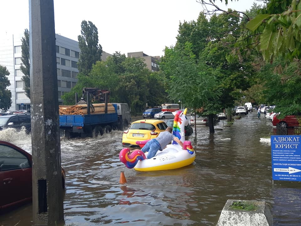 Багато районів столиці затоплено. Люди пересуваються вулицями на надувних матрацах.
