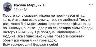 Мер Івано-Франківська Руслан Марцінків написав допис у своїй сторінці у Фейсбуці.