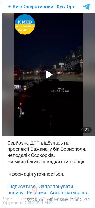 Спочатку у столичних Telegram-каналах повідомили про ДТП на проспекті Миколи Бажана. На одному з оприлюднених відео можна було побачити, що на місце прибули чотири карети швидкої допомоги. Також стверджувалось, що після аварії з транспортного засобу вибігли мобілізовані в кайданках, один з яких утік.