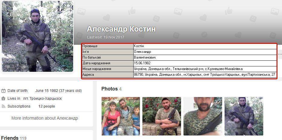 На скріншотах із соцмереж йдеться про те, що він вже неодноразово був оперований у Москві. А на особистій сторінці зазначається, що терористові був 41 рік, він родом із міста Макіївка (Донецька область). Також зрадник брав участь у групах «Против ОУН-УПА и прочих пособников фашизма», «Слава России – Своих не бросаем Помощь Новороссии».