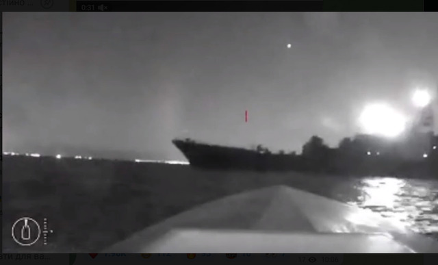З'явилося відео влучання морського дрона у великий російський корабель