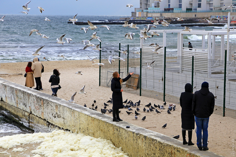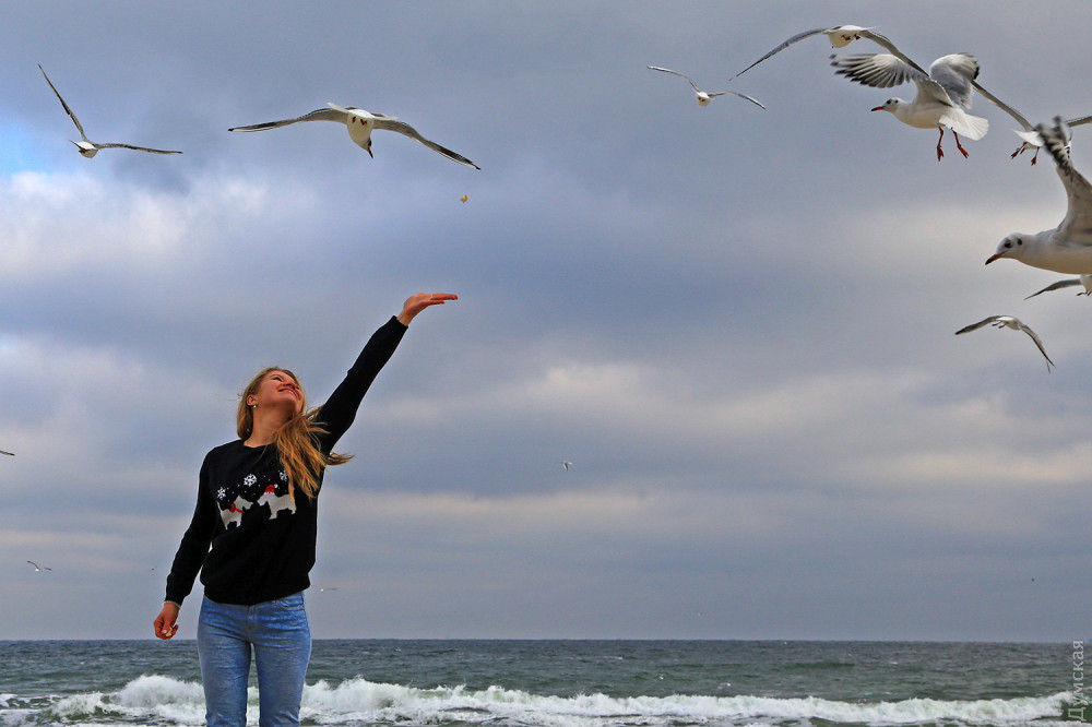 Водночас, на одеських пляжах почався сезон годування чайок. Багато хто приходить на море з хлібними батонами, щоб нагодувати морських птахів перед довгою зимою.