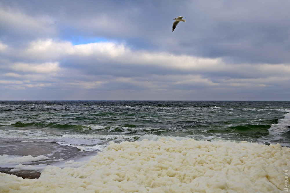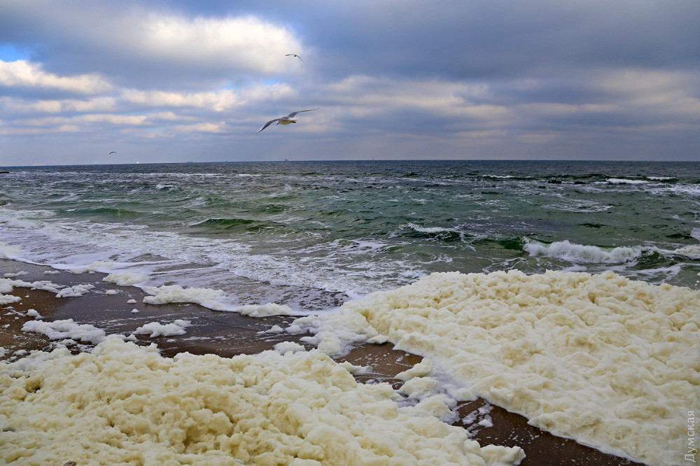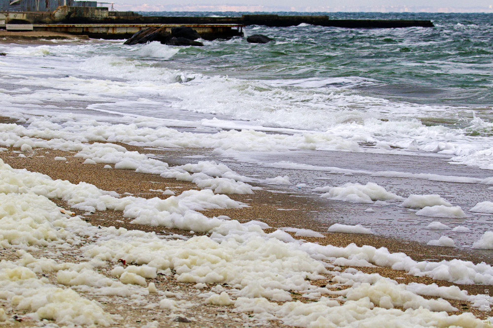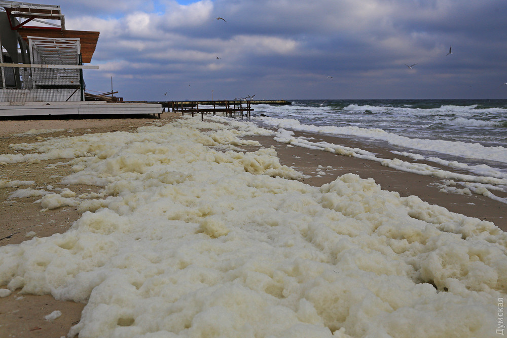 На деяких пляжах Одеси зафіксували незвичайне явище: їх вкрила незвична піна, яку місцеві жартома називають «морським капучино».