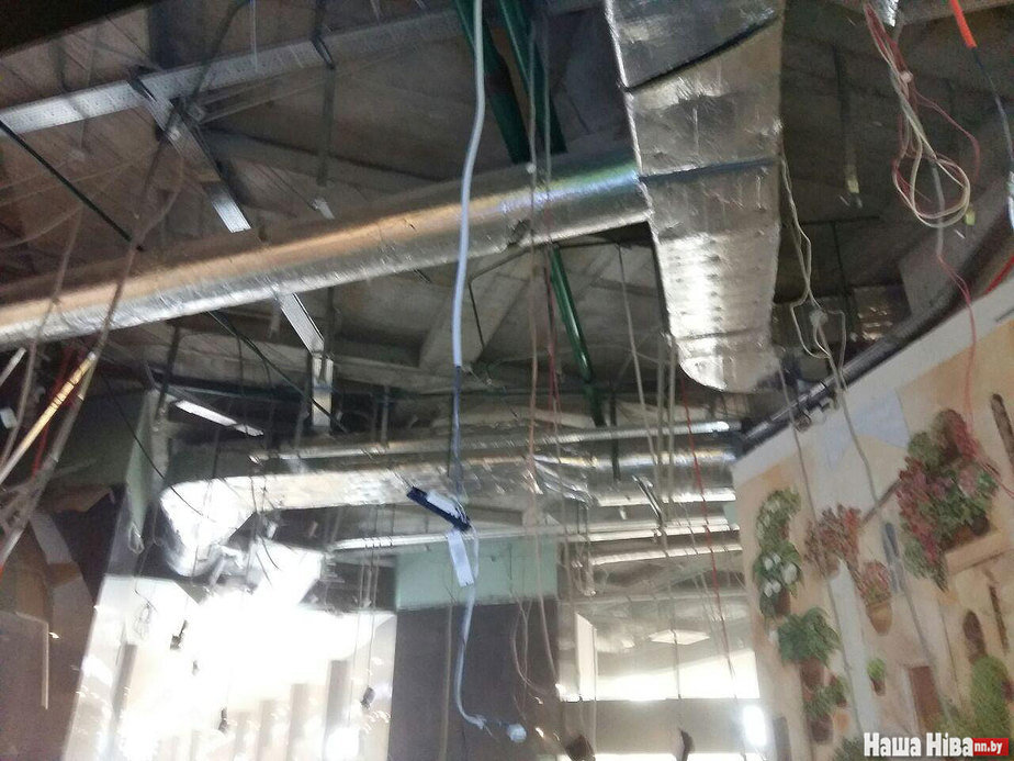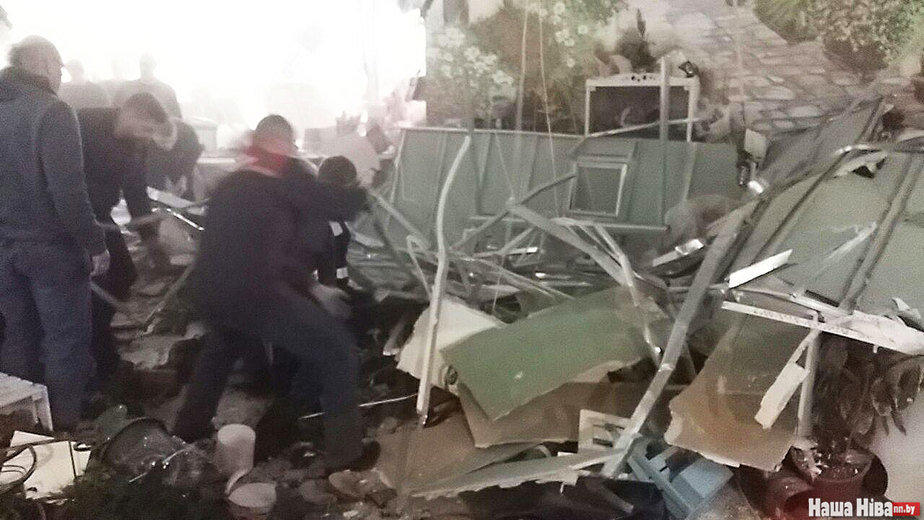 "Перші шматки впали на дівчину в квітковому магазині. Її привалило, але коли стало ясно, що звалилося вже все, що могло, відвідувачі витягнули дівчину з-під завалів. Вона була шокована, казала, що болить нога і ребра", — повідомляє білоруське видання.