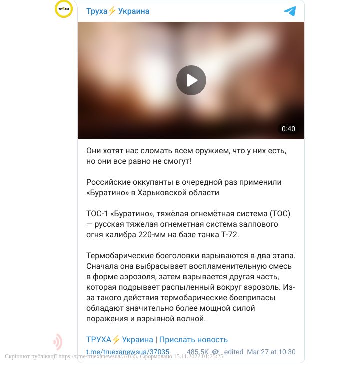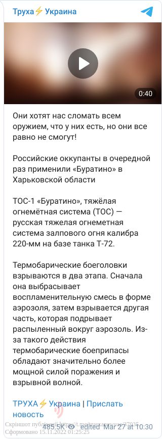 Російські окупанти знову використали вогнемет «Буратіно» на Харківщині.