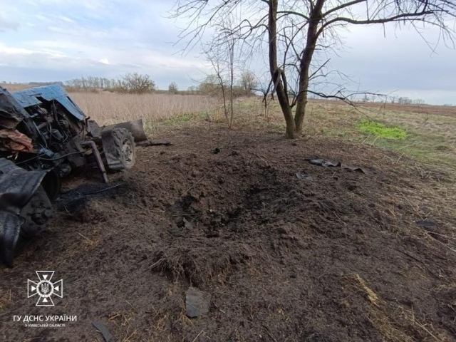 У суботу, 8 квітня, в Київській області трактор на полі наїхав на протитанкову міну та підірвався, водій отримав тілесні ушкодження.