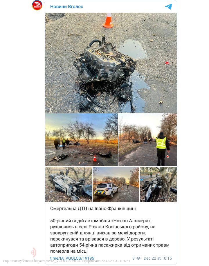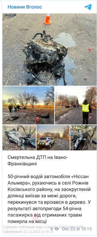 У Рожнівській громаді водій «Ніссан Альмера» виїхав за межі дороги та наїхав на дерево. Автомобіль перекинувся. Внаслідок автопригоди загинула пасажирка.