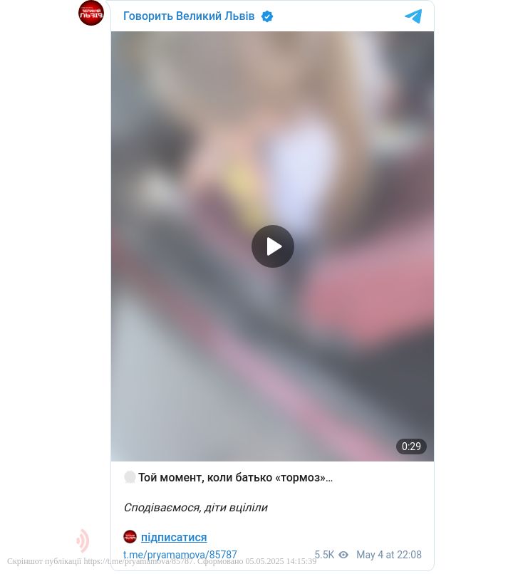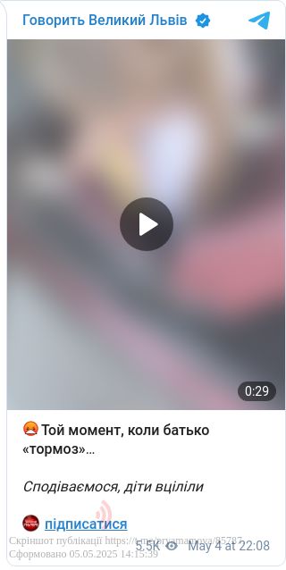 Про інцидент стало відомо завдяки моніторингу інтернету. На оприлюдненому відео видно, як дитина керує автівкою під наглядом батька, який дає поради. На щастя, діти не потрапили в аварію.