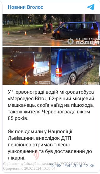 Як повідомили у Нацполіції Львівщини, внаслідок ДТП пенсіонер отримав тілесні ушкодження та був доставлений до лікарні.