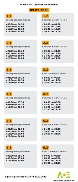 9 лютого у Львівській області оновили графік відключення електроенергії.
