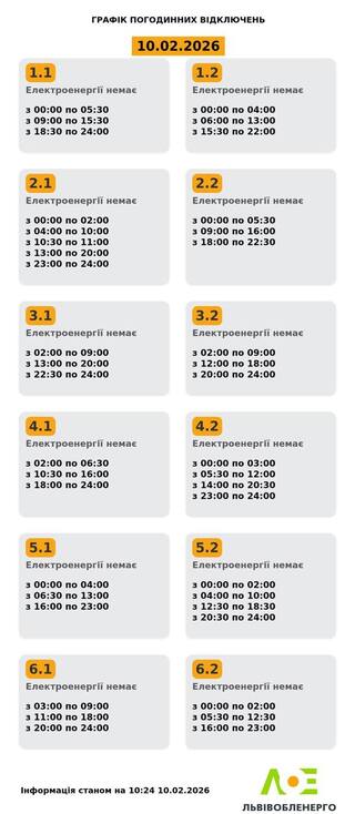 Інформація станом на 10:24 10.02.2026