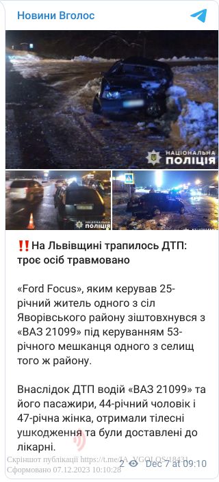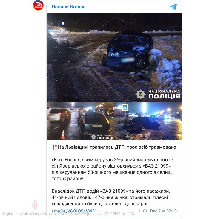 Внаслідок ДТП водій «ВАЗ 21099» та його пасажири, 44-річний чоловік і 47-річна жінка – обоє жителі одного з сіл Львівського району, отримали тілесні ушкодження та були доставлені до лікарні.