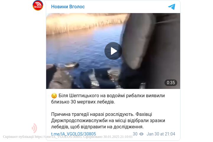 Неподалік Шептицького рибалки натрапили на майже три десятки мертвих лебедів.