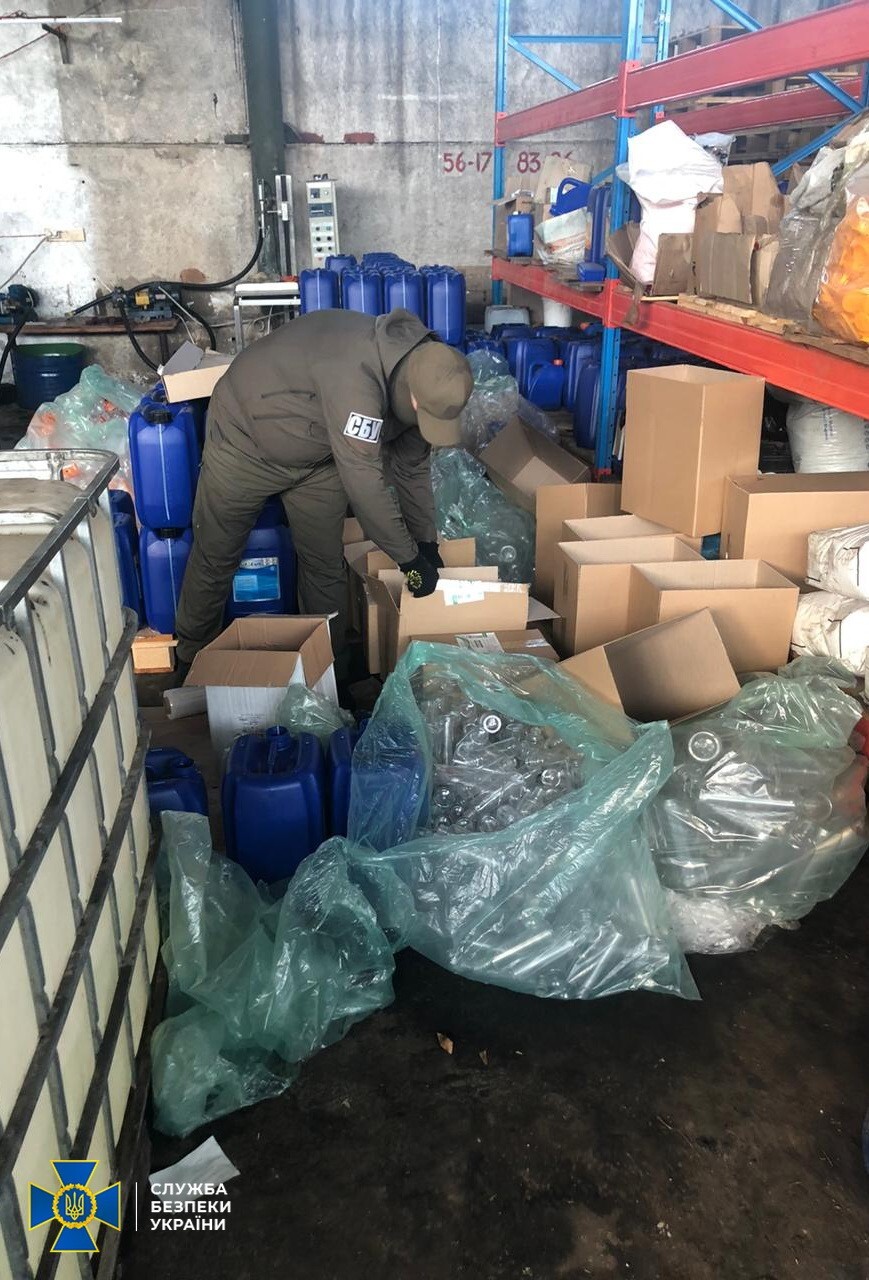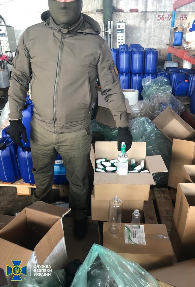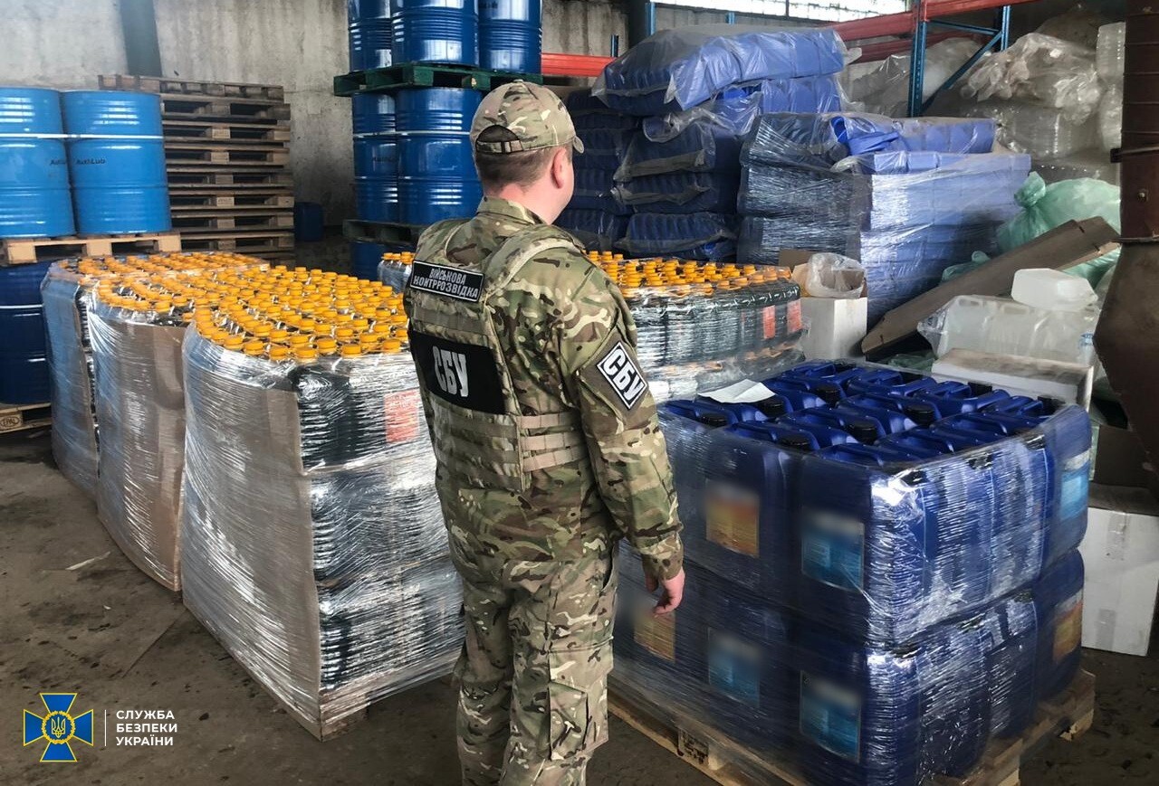 За даними СБУ масштабне виробництво антисептиків «відбувалося кустарним способом з використанням сировини сумнівного походження без дозвільних документів та контролю якості».