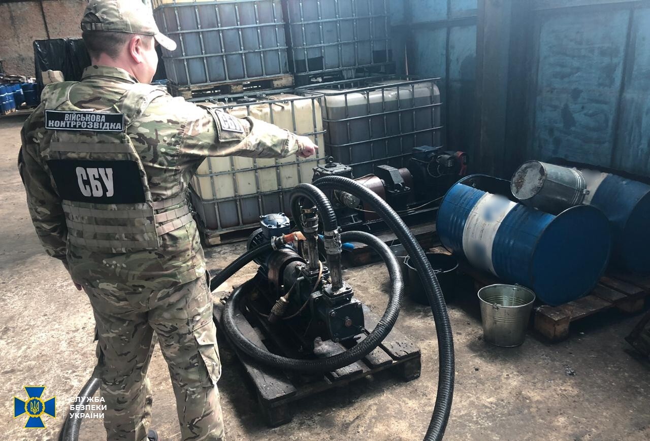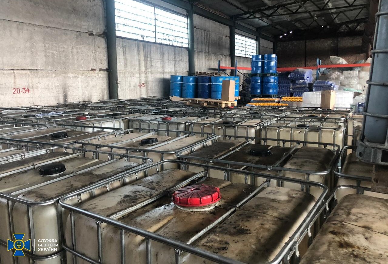Під час обшуків правоохоронці виявили обладнання для виготовлення підробленого антисептика, понад 13 тонн спиртової суміші, а також 30 тонн паливно-мастильних матеріалів невідомого походження.