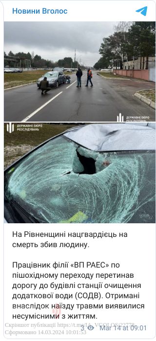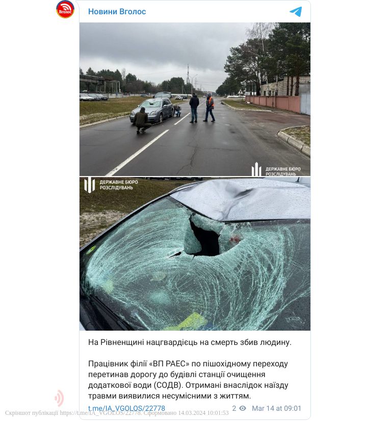 На Рівненщині нацгвардієць на смерть збив працівника філії «ВП РАЕС».