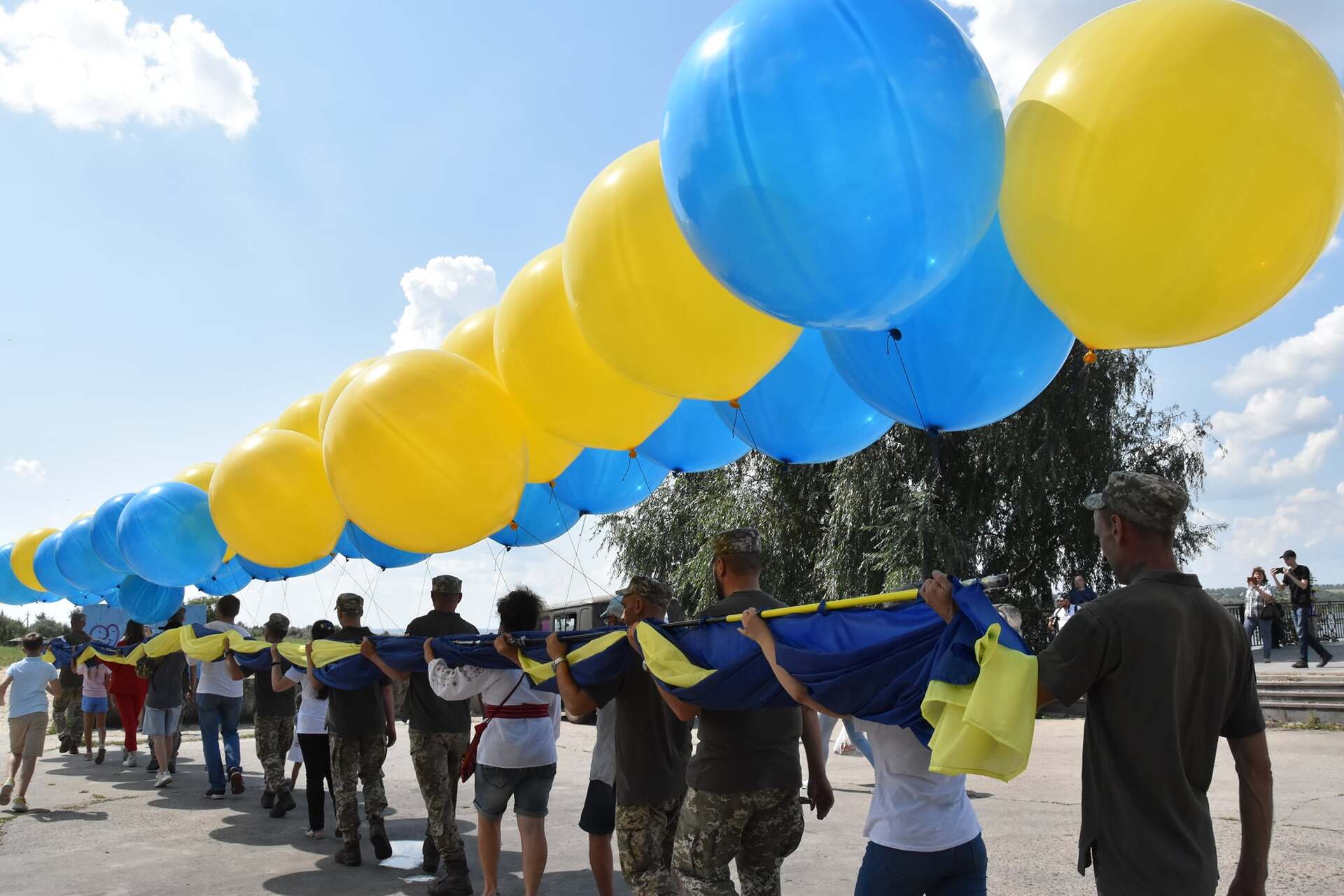 Зі Світлодарська в бік тимчасово окупованих територій запустили прапор України, розміром 15 на 6 метрів.