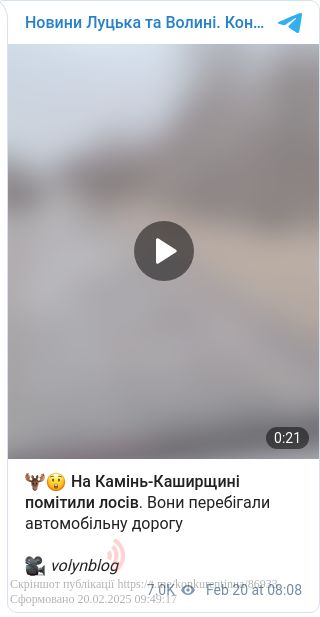 На дорозі у Камінь-Каширському районі несподівано з'явилися лосі. Декілька тварин вибігли перед автомобілями й швидко втекли у ліс.