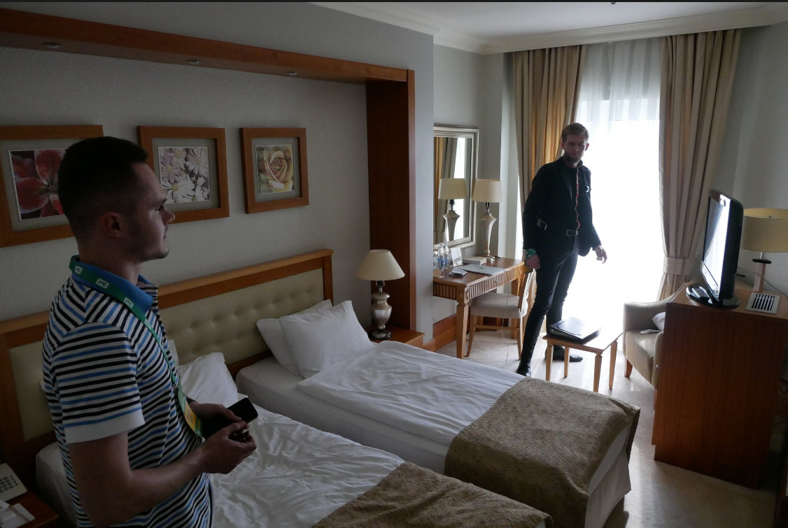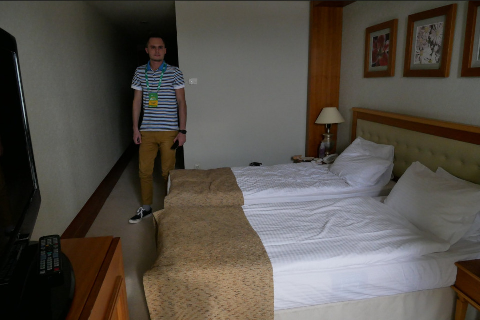 Наймолодший народний депутат від «Слуги народу» Святослав Юраш провів екскурсію в номері, де заселився на час навчання тижневої «школи депутатів» в готелі Rixsos в Трускавці.