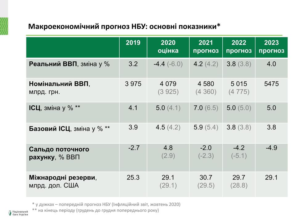 Згідно з прогнозом НБУ у поточному році ВВП України буде зросте на 4,2% та продовжить цю тенденцію у 2022-23 роках на рівні близько 4%.