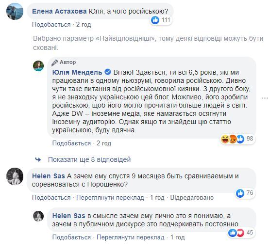 Мендель розкритикували через те, що допис був зроблений російською мовою.