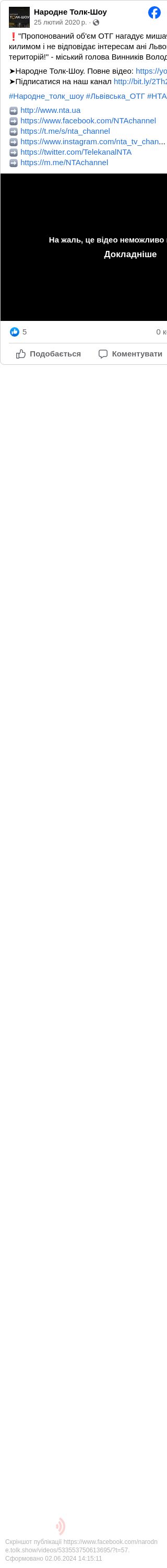 Про це в ефірі Народного толк-шоу 25 лютого заявив мер міста Винники Володимир Квурт.
