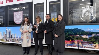 Цього тижня у Франкфурті-на-Майні запустили особливий трамвайний вагон. Він має назву «Франкфурт-Львів» і на ньому зображені панорами обох міст. Вагон символізує партнерство і дружбу між німецьким і українським містами. Такі вагони з назвами міст-побратимів — традиція для Франкфурта: кожне з 18 міст має свій фірмовий трамвай. Тепер серед них — і Львів.