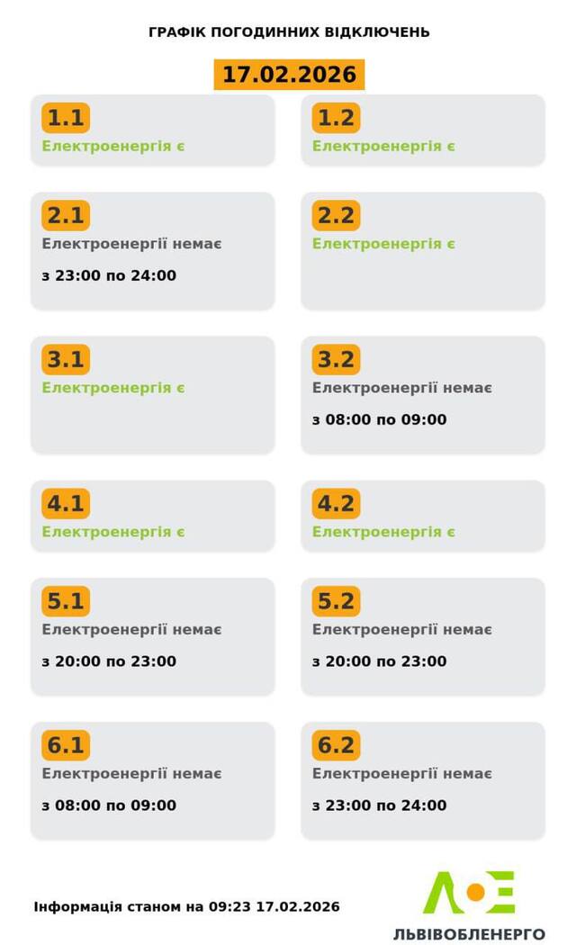 У Львівській області 17 лютого застосують графіки відключення світла.