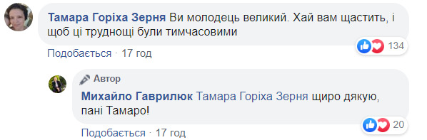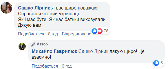Незважаючи на критику, на адресу Гаврилюка під постом надійшло чимало теплих слів, навіть від відомих в Україні осіб.