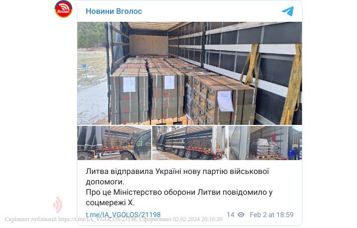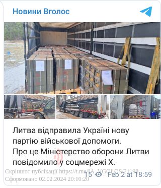 Литва відправила Україні нову партію військової допомоги.