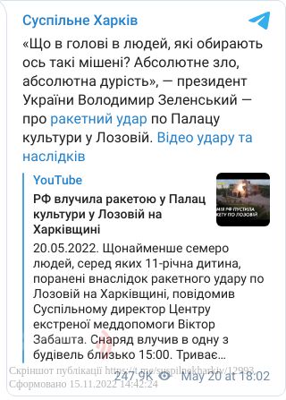 «Щонайменше семеро людей, серед яких 11-річна дитина, поранені внаслідок ракетного удару по Лозовій на Харківщині, повідомив директор Центру екстреної меддопомоги Віктор Забашта», - йдеться в повідомленні.