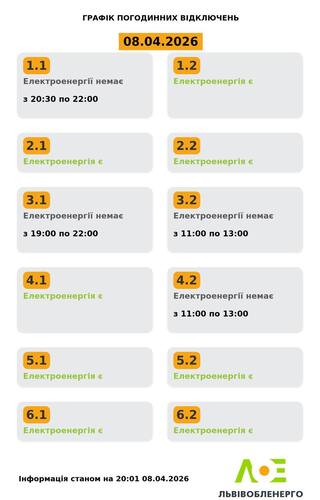 У середу, 8 квітня, на Львівщині діятимуть графіки відключення світла.