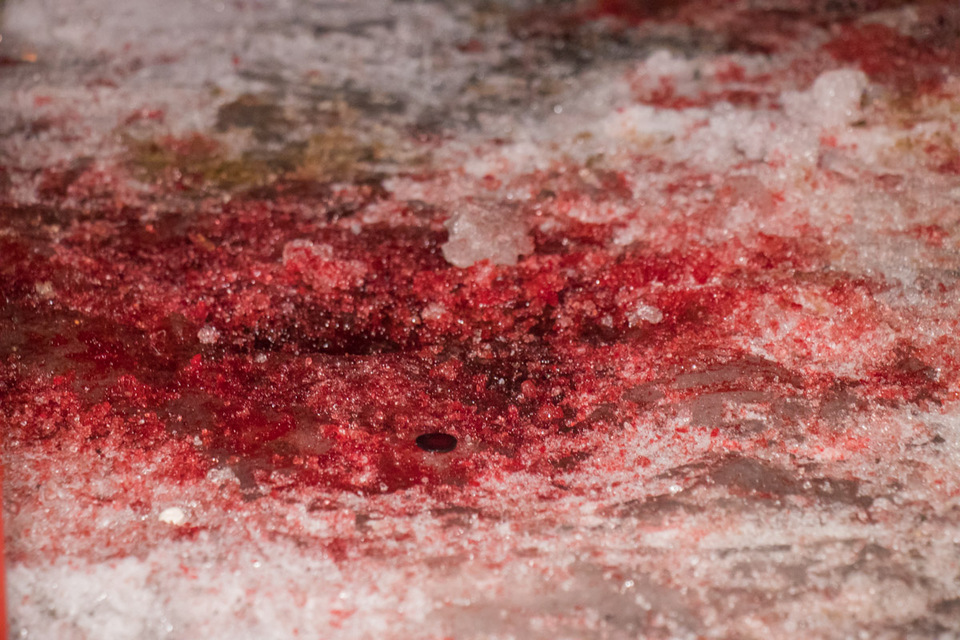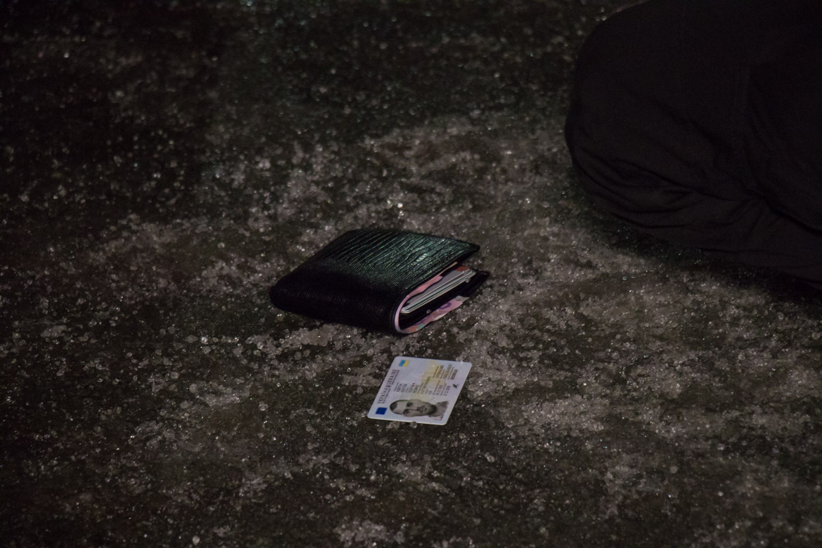 Поліцейські вибили зброю у нього з рук, однак у момент затримання грабіжник дістав ніж і поранив правоохоронця в ногу. Після цього він розрізав собі руку. Поліцейського та грабіжника госпіталізували.