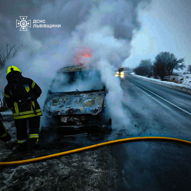 спроби гасіння: чоловік негайно зупинив автомобіль і намагався загасити займання за допомогою вогнегасника;