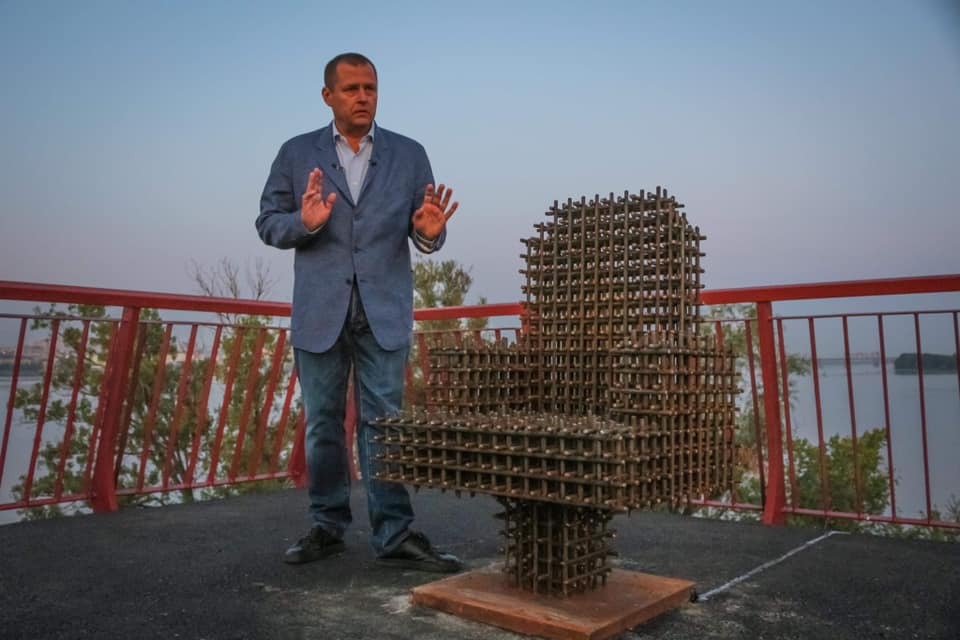На мості також з'явилася й істаляція з арматури, яка символізує крісло мера.