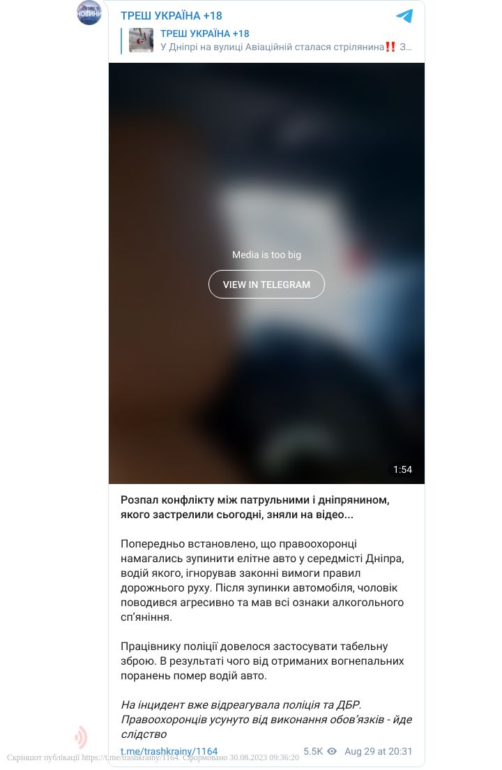 Згодом правоохоронці почали силою витягувати їх з авто та застосували газовий балончик. Під час сутички патрульний здійснив три постріли з табельної зброї в сторону пасажира. Від отриманих травм постраждалий помер.
