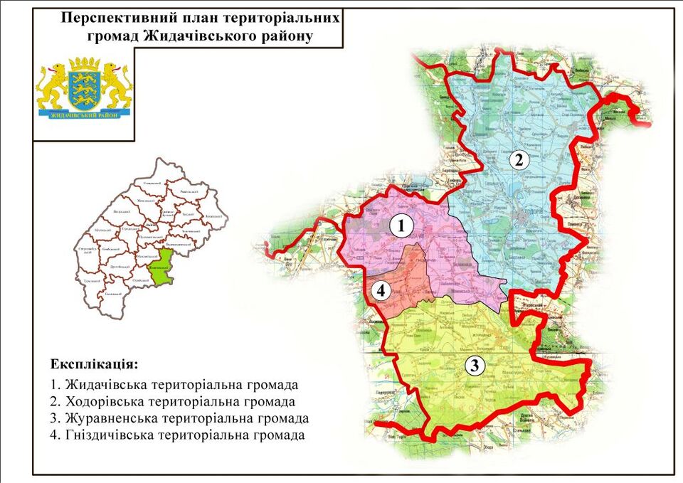 Перспективним планом Львівської області на територіальній основі Жидачівського району передбачається створення чотирьох спроможних громад.