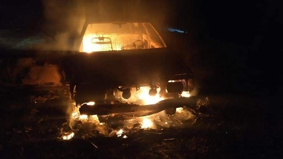 Щоправда вони розлили біля автівки бензин і та спалахнула. Оскільки причіп був на вантажений деревиною, вогонь швидко розповсюдився і повністю спалив сам автомобіль. Натомість причеп залишився цілим.